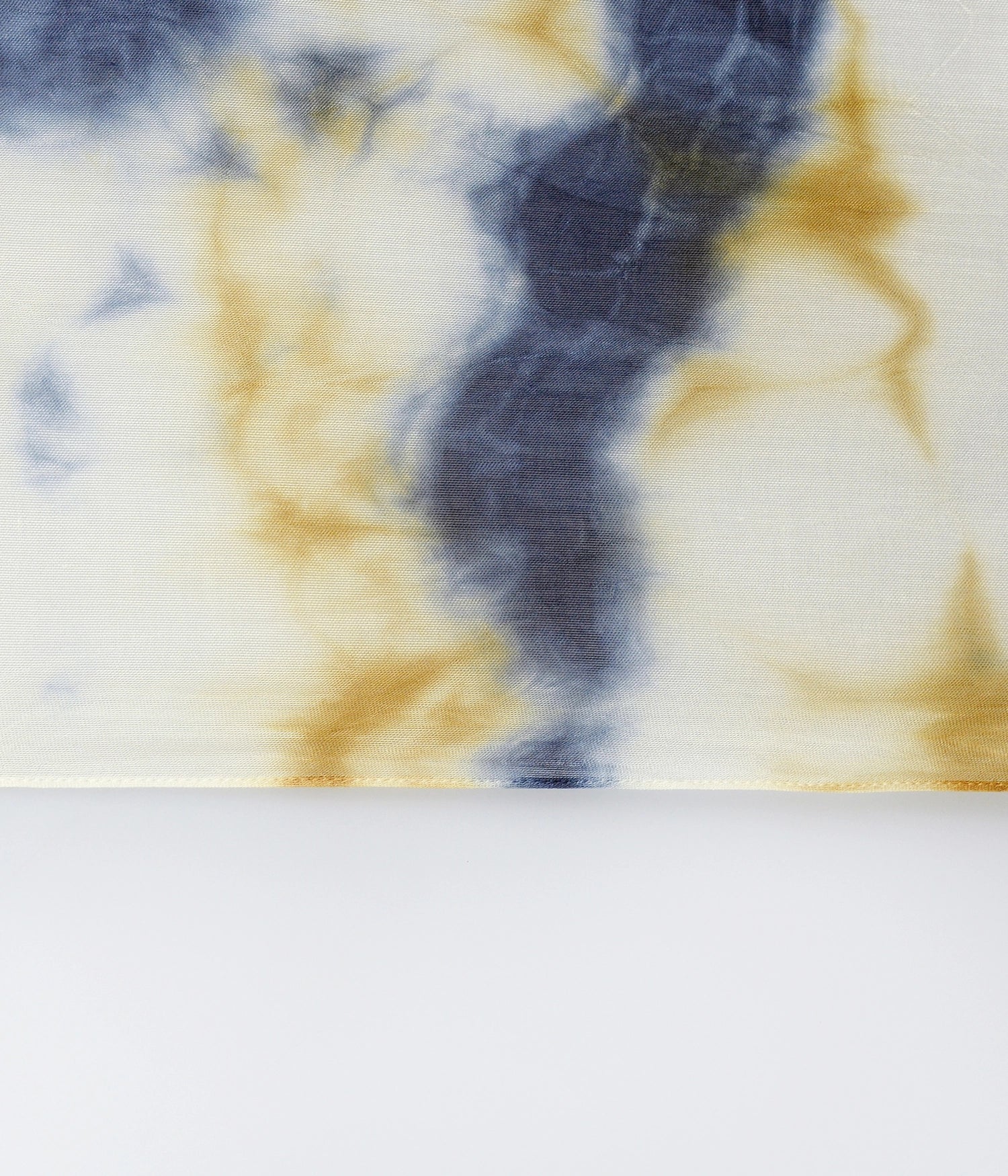 Legare, manipolare e stringere il tessuto per poi immergerlo in bagni di tintura. Fantasie astratte e uniche, risultato di un confronto tra colore e materia.