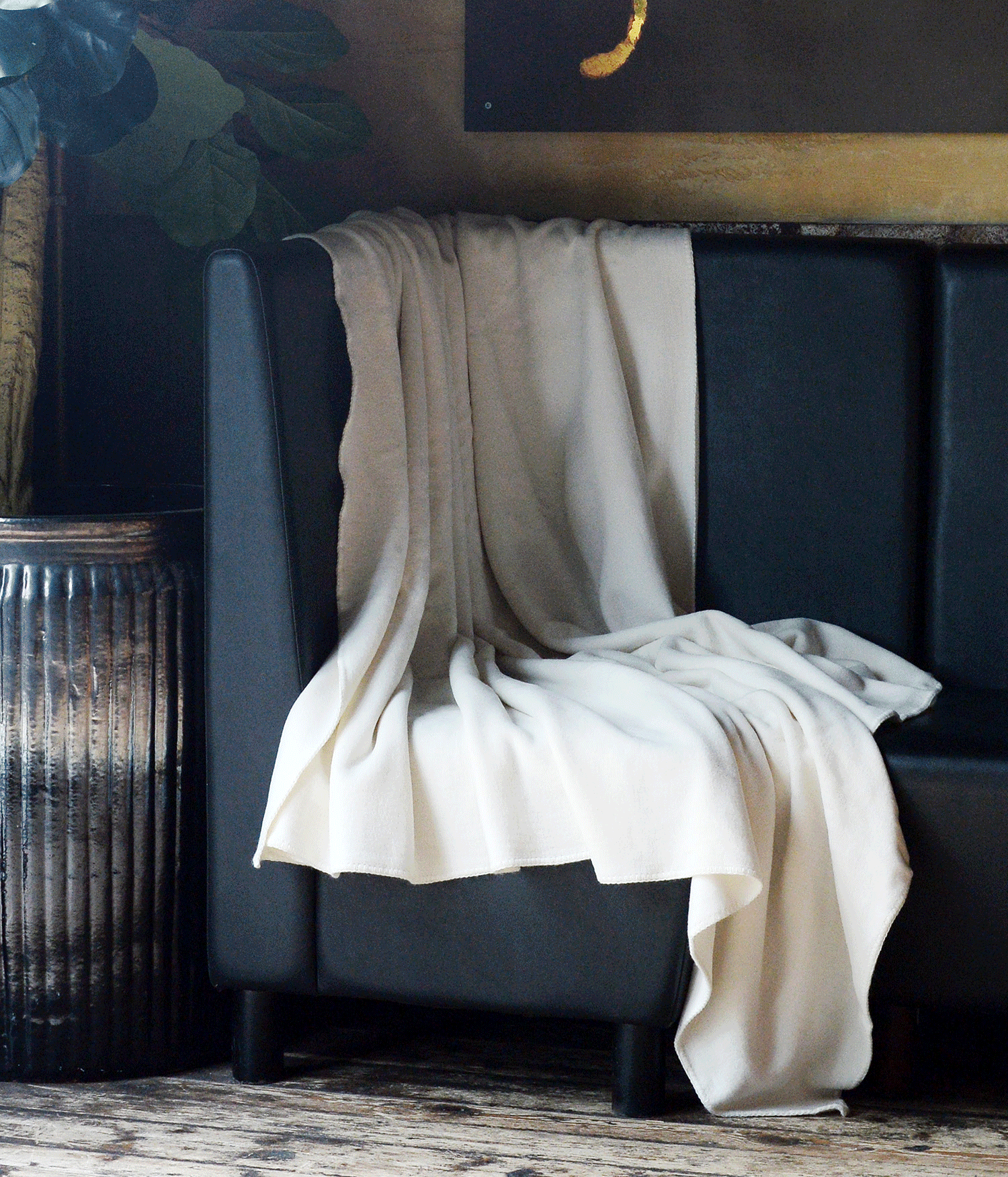 Il primo plaid realizzato in fiocco di bambù. Plaid Bamboo Aurea si presenta come un simbolo di eleganza e raffinatezza, un autentico capolavoro tessile italiano che celebra l'armonia tra natura e stile.